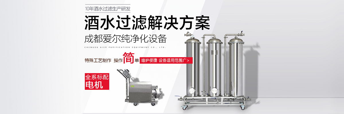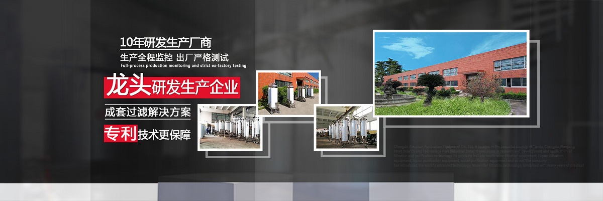 成都愛爾純凈化設(shè)備有限公司,坐落于美麗的天府之國,成都市溫江區(qū)海峽科技園工業(yè)區(qū),專業(yè)從事于過濾、凈化技術(shù)的研發(fā)應用,產(chǎn)品有保健酒過濾設(shè)備、白酒過濾設(shè)備、白酒凈化設(shè)備、水凈化設(shè)備等,公司引進世界先進過濾分子技術(shù),結(jié)合專業(yè)技術(shù)人員資深多年實踐經(jīng)驗,解決酒類、飲水類后期處理難題。 業(yè)務(wù)涵蓋,酒類過濾:除混濁沉淀,澄清處理、除苦味,異雜味,新酒催熟陳化處理 、除塑化劑、固形物、雜醇油、甲醇及各類含量超標后期處理。 水類:軟水、純凈水、礦泉水、飲料等凈化處理。用心為客戶提高生產(chǎn)效率、提高產(chǎn)品質(zhì)量、降低生產(chǎn)成本、環(huán)保減排而開發(fā)創(chuàng)新,堅持奮斗。 公司至誠每一位客戶,“誠信服務(wù),客戶至上”為宗旨,為客戶要求,用心凈化每一點滴,我們都將以精準的數(shù)據(jù)化設(shè)計、嚴格的設(shè)備制作質(zhì)量把關(guān)、快捷專業(yè)的安裝調(diào)試以及周到的售后服務(wù),解決客戶生產(chǎn)過程中遇見的各種酒、水后期處理的技術(shù)難題。